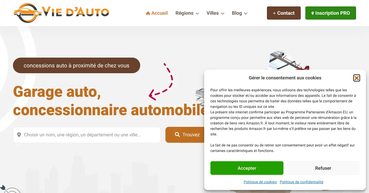 Découvrez votre prochain garage ou concessionnaire automobile près de chez vous avec Viedauto ! Que vous soyez à la recherche d’un véhicule flambant neuf ou d’un modèle d’occasion à prix compétitif, notre plateforme vous connecte facilement aux meilleures concessions de votre région. Bénéficiez d'un accompagnement personnalisé et de conseils d'experts pour choisir la voiture qui correspond parfaitement à vos besoins. Grâce à notre interface conviviale, parcourez les options disponibles dans votre ville et accédez aux avis de clients satisfaits pour prendre une décision éclairée.